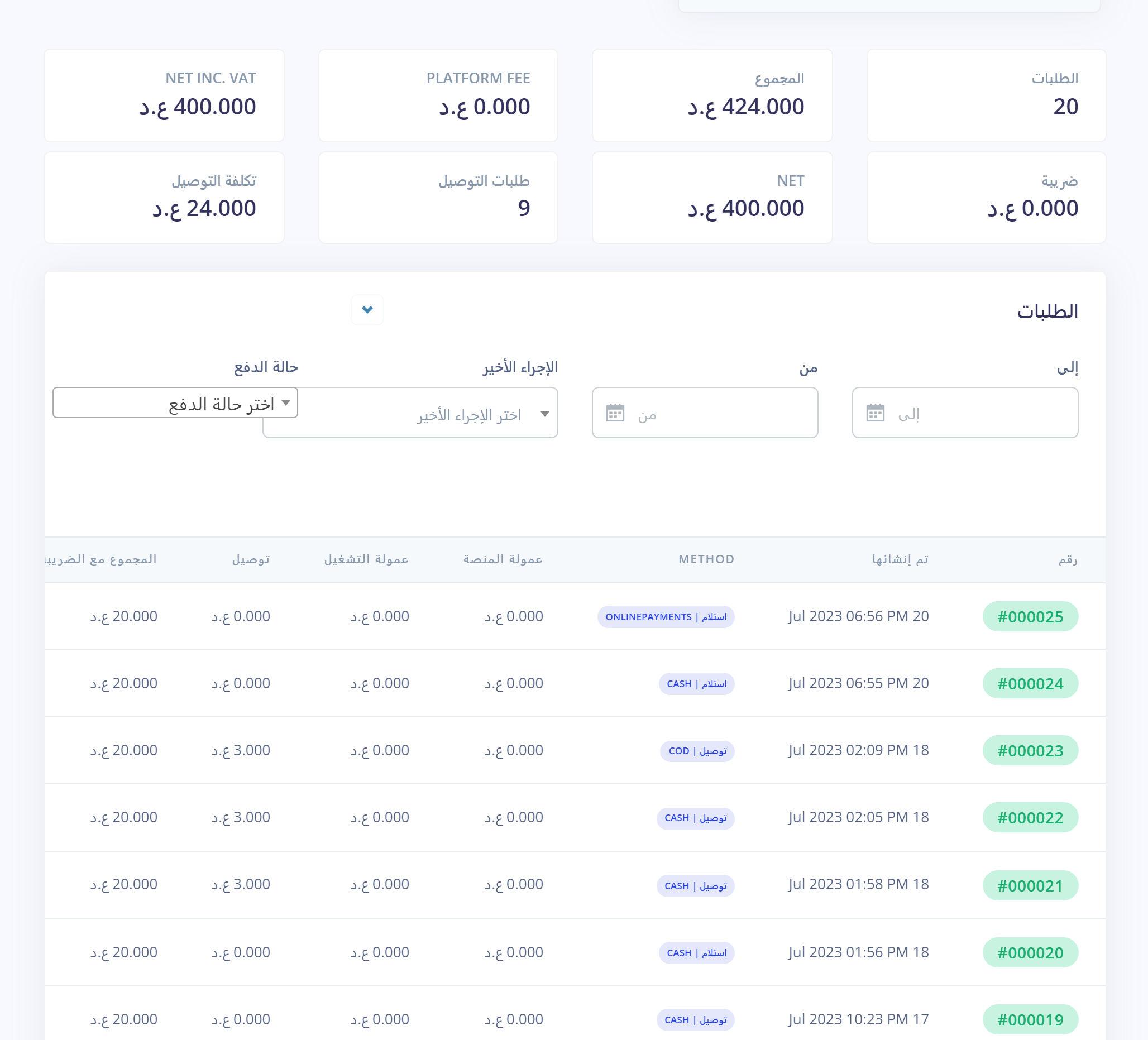 Instant reports to display profits, delivery costs, and taxes